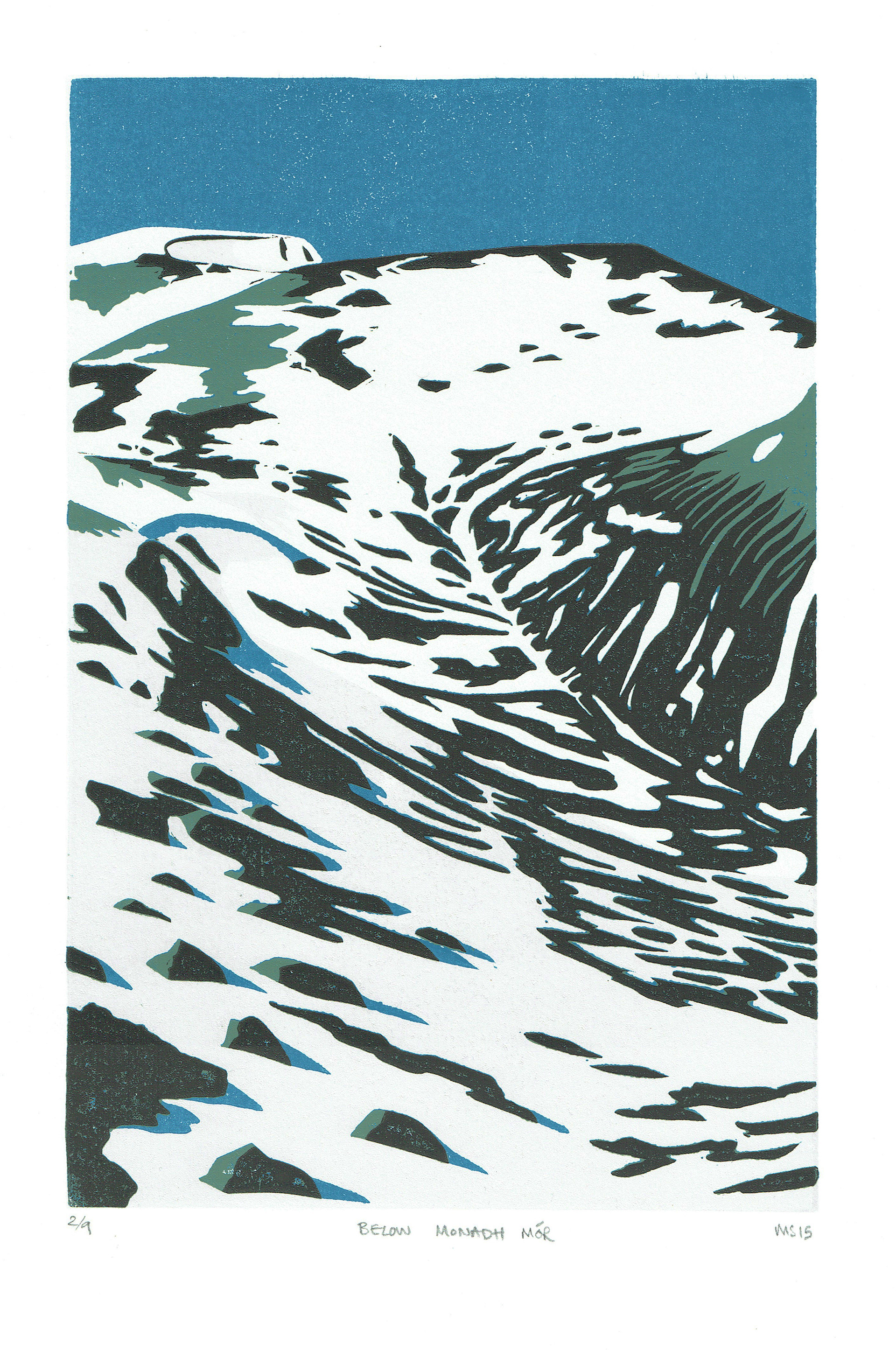 Below Monadh Mor • 20 x 30 cm • reduction linocut • May 2015